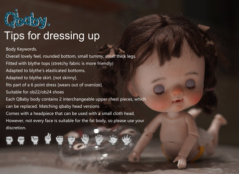 In order to adapt the ABS version and BJD version of the head, we have 2 upper chests for each body set. and a set of interchangeable hand shapes